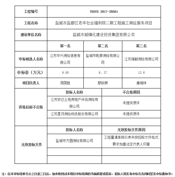 鹽都區(qū)工程項目評標結(jié)果公示表