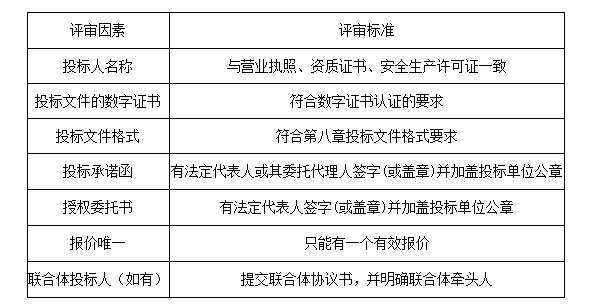 對招標(biāo)文件要求的工期、質(zhì)量、投標(biāo)保證金、履約擔(dān)保、投標(biāo)有效期、暫定價、不可競爭費(fèi)用等實(shí)質(zhì)性要求的響應(yīng)性進(jìn)行評審。