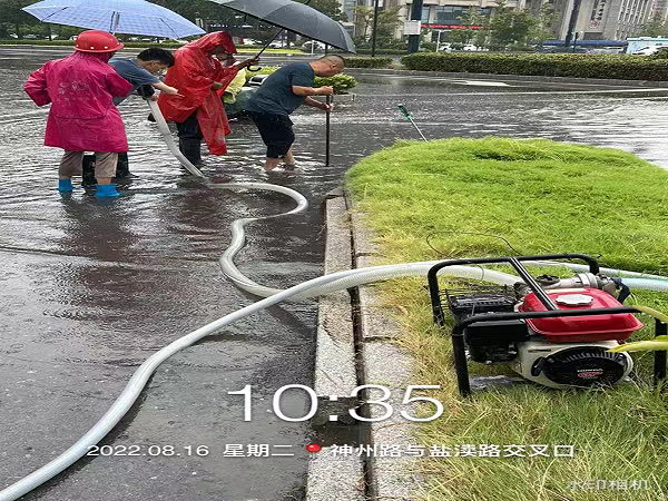 上午10點(diǎn),經(jīng)路面作業(yè)現(xiàn)場工作人員報(bào)告,在神州路與鹽瀆路交界處,最深積水達(dá)到15CM以上。應(yīng)急小分隊(duì)接到指令后,迅速駕駛車輛,運(yùn)載水泵、水管、鐵鍬等防汛物資,不到10分鐘就迅速趕到現(xiàn)場。在公司負(fù)責(zé)人劉鳳權(quán)、孫榮才等人的現(xiàn)場指揮下,搶險(xiǎn)人員立即查找造成堵塞積水的原因。經(jīng)過查找發(fā)現(xiàn),原來積水處只有一個(gè)下水道,無法快速排水。劉鳳權(quán)當(dāng)機(jī)立斷,指揮搶險(xiǎn)人員立即撬開附近窨井蓋,把水管放進(jìn)窨井,發(fā)動水泵,往不遠(yuǎn)處的雨水井排水。這時(shí)雨越下越大,風(fēng)越刮越猛,搶險(xiǎn)隊(duì)員們冒著狂風(fēng)暴雨,不畏雷鳴電閃,齊心協(xié)力清理積水,有的發(fā)動水泵梳理管道;有的用大掃帚清掃路面積水;有的清理積水中的垃圾雜物……隊(duì)員各司其職,分工合作,在時(shí)間緊迫、環(huán)境惡劣的情況下盡力完成排水作業(yè),經(jīng)過緊急搶排,道路恢復(fù)了通暢。