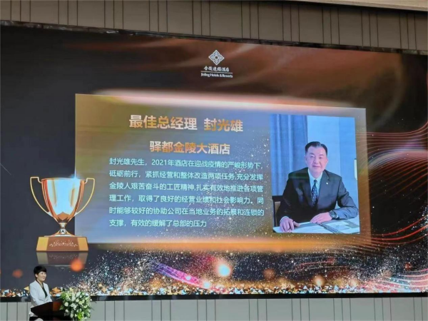 會議通報了金陵連鎖各成員酒店2022年上半年經(jīng)營管理情況,現(xiàn)場簽訂總經(jīng)理目標(biāo)責(zé)任書、廉政承諾書。會議公布各項評比獲獎名單并進行頒獎,驛都大酒店總經(jīng)理封光雄榮獲金陵連鎖酒店最佳總經(jīng)理、客房部徐紅琴榮獲金花飛揚最佳客房服務(wù)員、驛都大酒店在2022年度金陵連鎖酒店“尊享金陵”6.18大促活動中獲得綜合業(yè)績第三名。