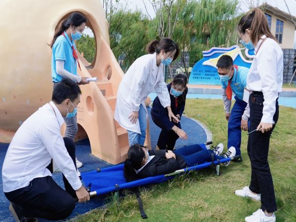 演練包括疫情防控專項演練、消防安全專項演練,以及游客突發(fā)事故應急救援演練三部分。消防安全專項演練模擬淘氣堡發(fā)生火情的應急處置情況。疫情防控專項演練模擬游客入園未掃場所碼和未佩戴口罩入園等應急處置情況。游客突發(fā)事故應急救援演練模擬觀光車剎車失靈和游客從高處墜下等應急救援工作。