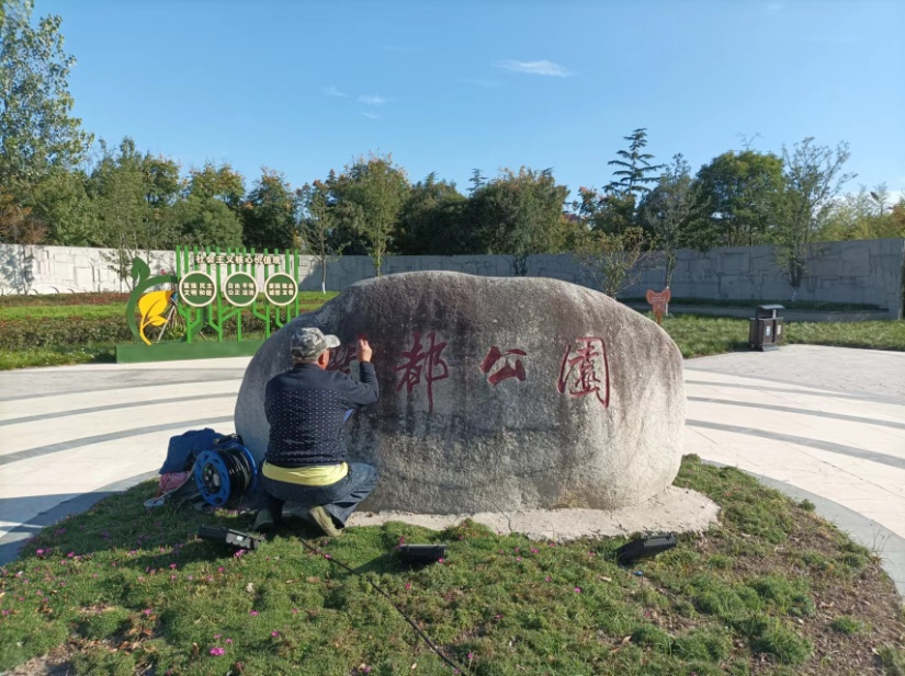 潤都公園主入口的特色浮雕景墻上嵌有“鶴舞東方”、“鹿騰濕都”等字樣,設(shè)計方案充分融入鹽城地方元素,以“鶴”、“鹿” 為主題,結(jié)合優(yōu)雅靈動的浮雕畫,突出鹽城濕地廣闊、物種豐富、生態(tài)良好的特點,充分體現(xiàn)了鹽城自然環(huán)境的優(yōu)越性。 美景共賞,更需要共同去維護(hù)。近日,公園工作人員對東門入口特色浮雕景墻和北門入口景觀石進(jìn)行清洗打磨、破損修復(fù)、字樣出新等處理。翻新工作保護(hù)了經(jīng)自然侵蝕的磨損景觀,改變了長久以來暗淡的色彩,也提升了公園入口景觀效果。