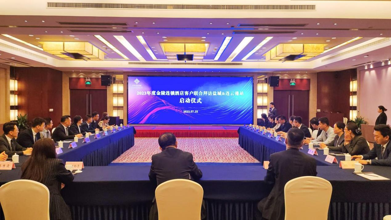 7月25日上午9時,2023年度金陵連鎖酒店客戶聯(lián)合拜訪活動暨鹽城站啟動儀式在鹽城驛都金陵大酒店圓滿舉行!金陵酒店管理公司營運中心副總經(jīng)理王勁松、驛都金陵大酒店總經(jīng)理封光雄、金陵連鎖酒店蘇北區(qū)域共12家酒店銷售團隊代表等應(yīng)邀參加本次活動。