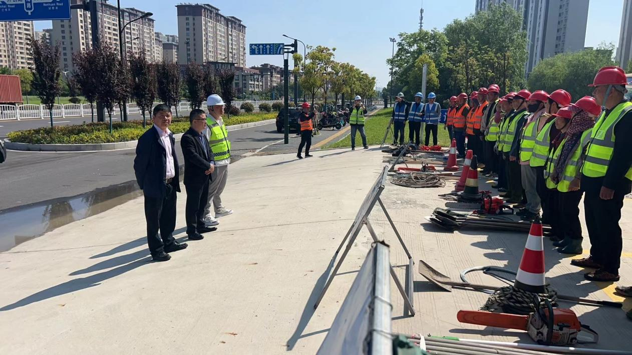 為做好汛前防汛隱患排查整治工作,從源頭上防范化解重大安全風險,檢驗防臺抗汛搶險能力,5月9日,區(qū)住建局及鹽都園林綠化公司數(shù)支專業(yè)隊伍在藍海路合作開展了2024年鹽都區(qū)市政綠化防汛防臺演練活動。