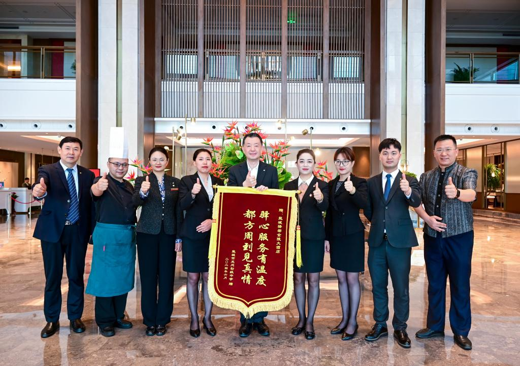 龍岡初級中學、鞍湖實驗學校特地送來了一面繡著“驛心服務有溫度 都方周到見真情”的錦旗,表達對酒店服務的認可與感激。酒店總經(jīng)理封光雄在接受錦旗時表示,“我們深感榮幸能夠成為學子們追夢路上的助力者。這面錦旗不僅是對我們工作的認可,更是激勵我們不斷前進的動力。我們將繼續(xù)秉承‘驛心服務’的理念,為每一位賓客提供更加周到的優(yōu)質(zhì)服務”。
