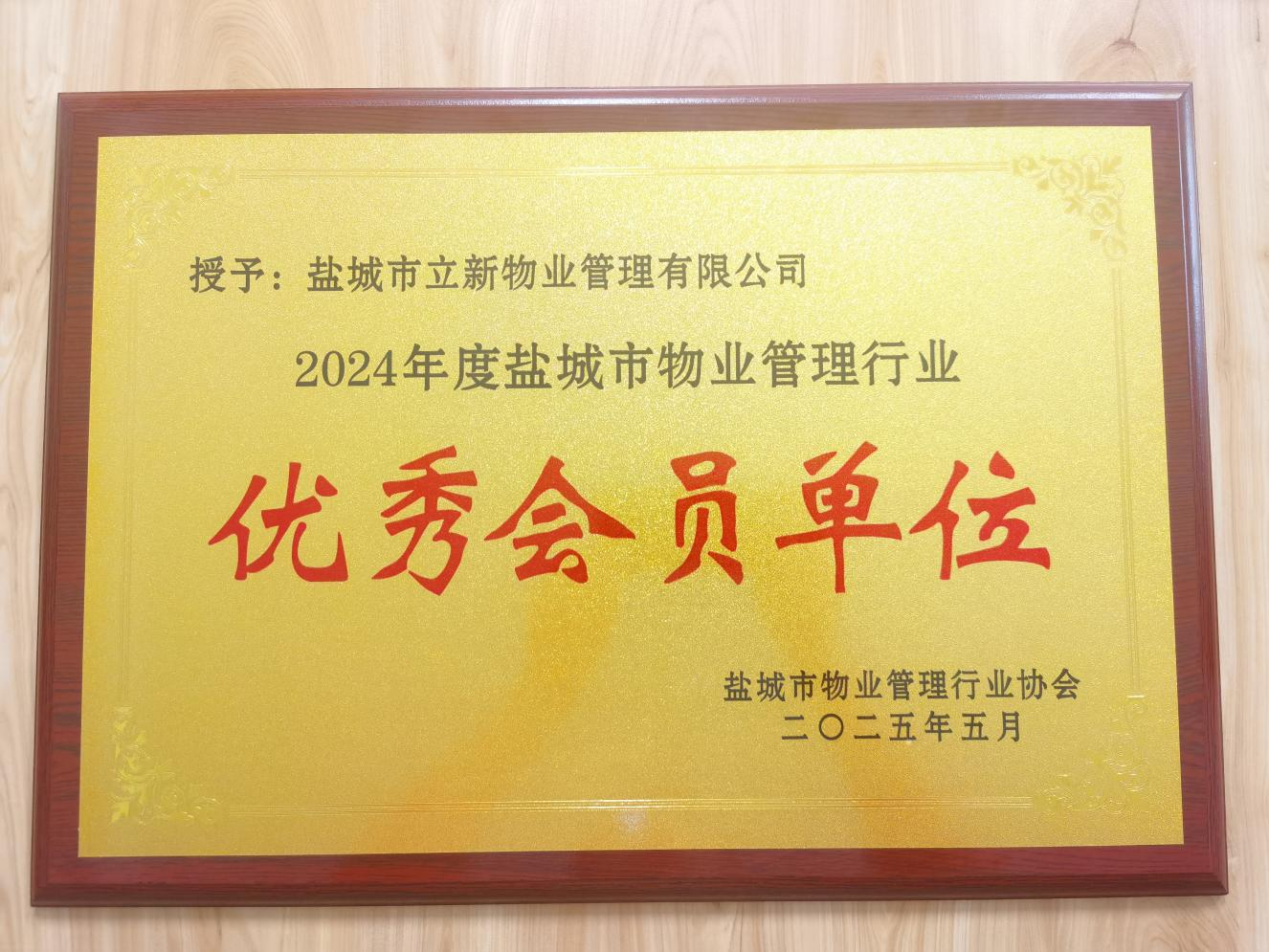 近日,鹽城市物業(yè)管理行業(yè)協(xié)會下發(fā)了《關(guān)于評選表彰2024年度物業(yè)管理行業(yè)先進(jìn)單位和先進(jìn)個人結(jié)果的通知》,鹽城市立新物業(yè)管理有限公司憑借卓越的綜合實(shí)力,榮獲“2024年度鹽城市物業(yè)管理行業(yè)優(yōu)秀會員單位”的稱號。