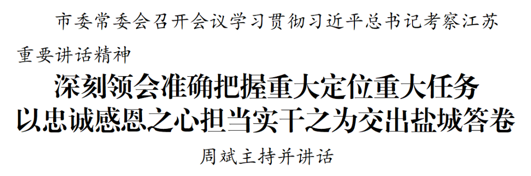 市委常委會(huì)召開(kāi)會(huì)議學(xué)習(xí)貫徹習(xí)近平總書記考察江蘇重要講話精神